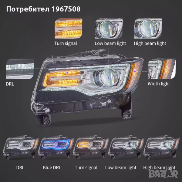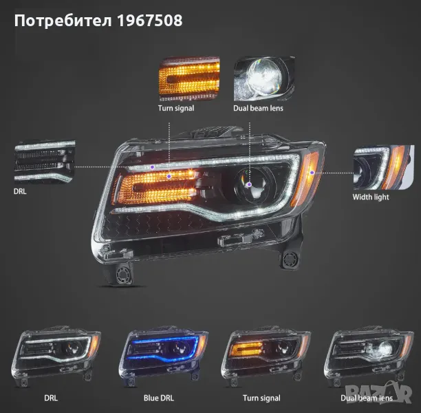 Комплект LED фарове за Jeep Grand Cherokee WK2 2011-2013 с начална синя анимация на DRL-а.