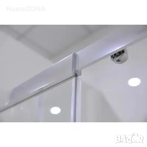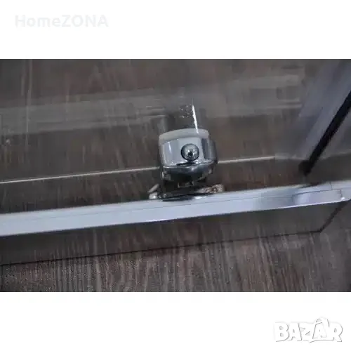 Параван за баня състоящ се от стационарно стъкло с плъзгаща врата.