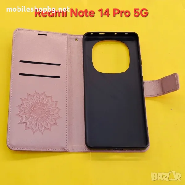 Redmi Note 14 Pro 5G калъф страничен с прегради и закопчаване розов с илюстрация → Обява 49371360