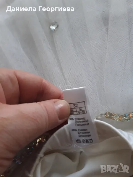 Пачка с обръч на фирма "ПРИМА" 32 размер. Слагана е от дете от 1 до 4 клас само по концерти. Горния пласт с камъните и пайетите е пришит допълнително, може да се махне.