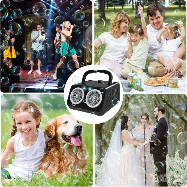 Машината за балончета е перфектната играчка на открито за поляна, заден двор, плаж, парк, къмпинг, барбекю и др. Това е издръжлива и дълготрайна машина за балончета за всеки, който търси забавление и безопасен избор на машина за мехурчета. Също така е страхотна идея за играчка за малки деца, деца и домашни любимци. Децата могат да играят с мехурчета по всяко време в паркове, дворове, плажове, къмпинги, детски площадки и поляни.