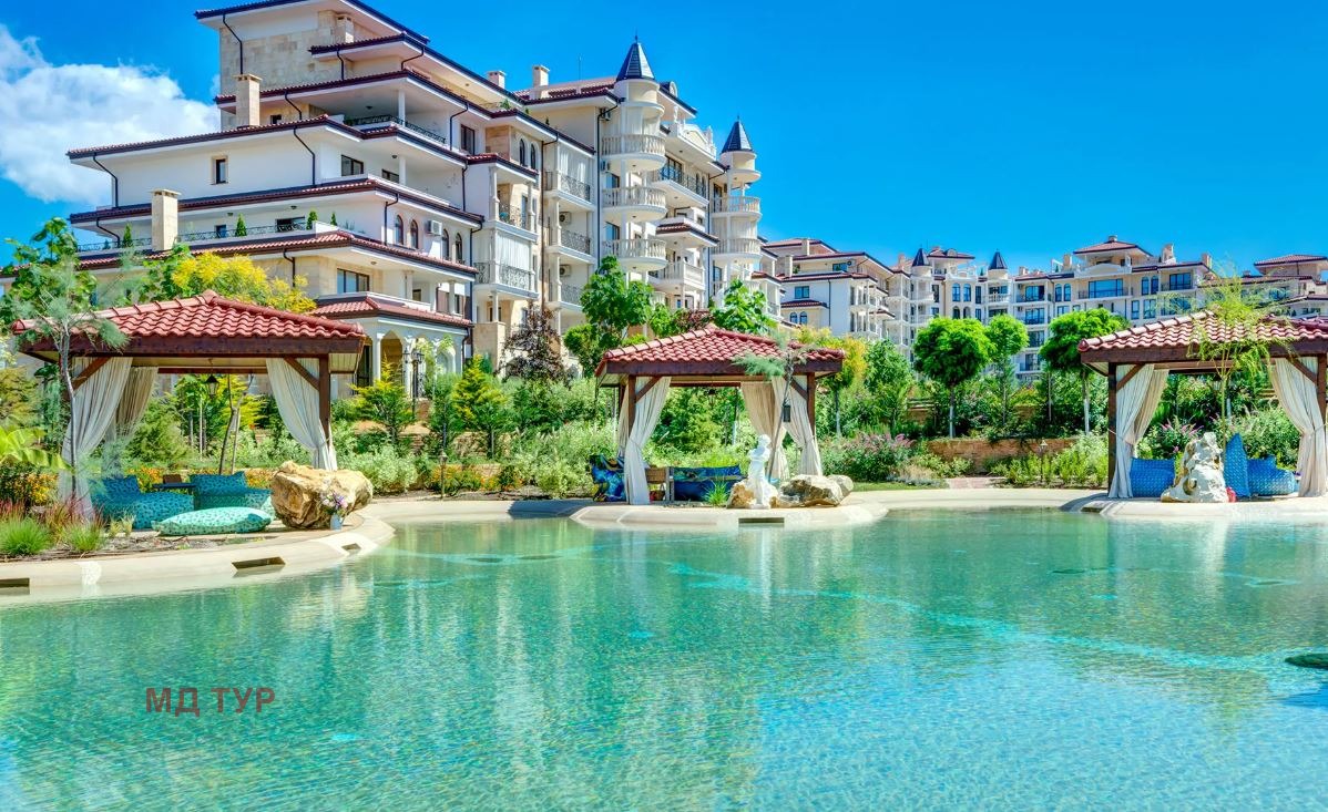 Страхотен голям апартамент в луксозен комплекс. Състои се от просторна дневна с кухненски бокс, 3 спални, 2 Бани с тоалетна 2 тераси - гледка басейн