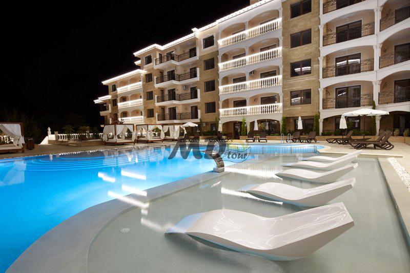 Он расположен в самом роскошном комплексе в районе. Он расположен по дороге к центральному пляжу Несебра, напротив городского парка и пешеходной дорожки на Старый Несебр.