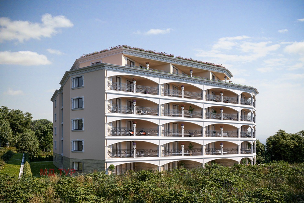 An elegant, luxurious and modern complex, built in a modern architectural style, located on the first line of the sea, in the new part of the town of Nessebar, in close proximity to the historical area of the town. The complex is of a closed type, impresses with its sophistication and a beautiful frontal view of the sea bay from all apartments. The location is very good - in a communicative area, with a well-organized infrastructure, near the park area of the city. The complex offers for sale two- and three-room apartments with functional layouts, complete turnkey, which includes floor covering, painted walls and ceilings, equipped bathrooms, air conditioning. The building has luxurious common areas, a modern elevator and controlled access. Suitable for year-round use.