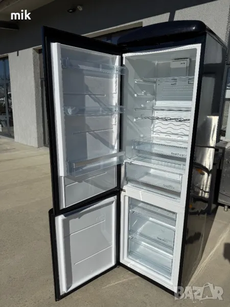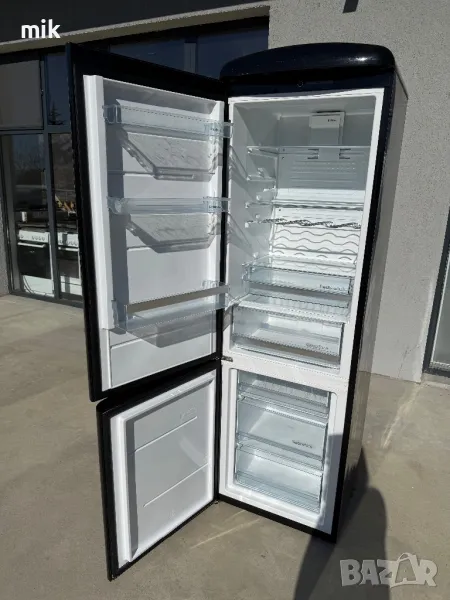 Черен ретро хладилник с фризер Gorenje. Размери 190-60ш-65д. Много запазен външен вид. Оригинално оборудване. Закупен от Германия. Общ обем 322 литра. Тих и икономичн компресор.