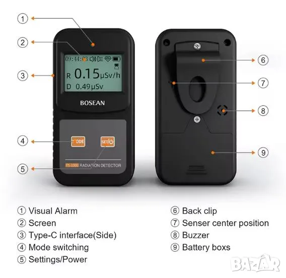 Гайгеров Брояч Дозиметър Уред за Измерване на Радиация Детектор за Ядрена Радиация BOSEAN FS-1000