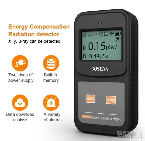 Диапазон на измерване: 0.1μSv/h - 10mSv/h
