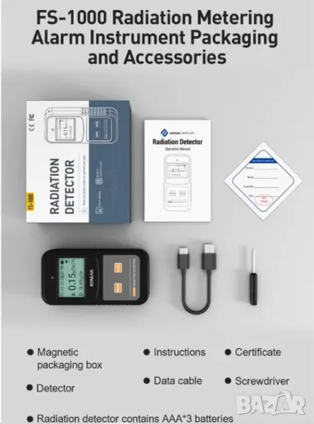 Детекторът за ядрена радиация BOSEAN FS-1000 се свързва с компютър чрез USB кабел, който поддържа софтуера за изтегляне, анализ, управление на данни и други функции. Устройството дава възможност за ясно и удобно проследяване на детайлите на натрупаната еквивалентна доза за по-добро разбиране и управление на данните.