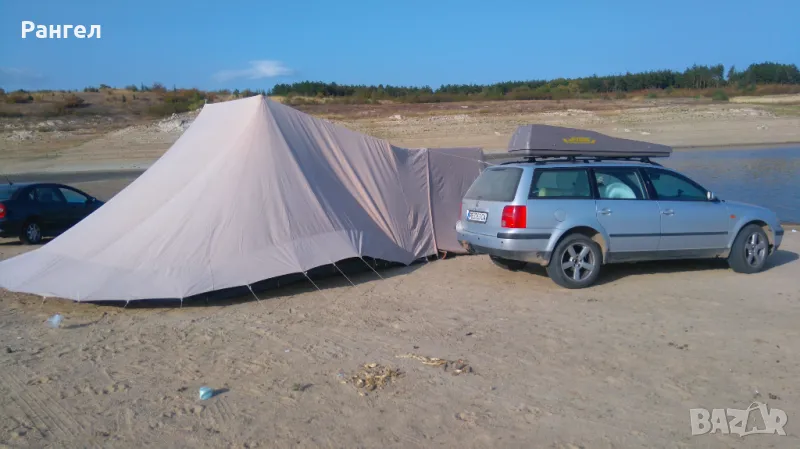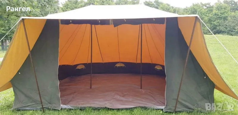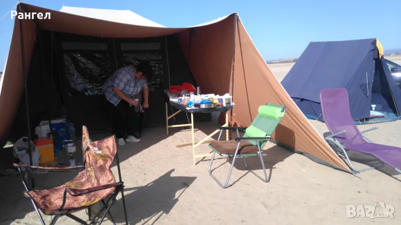 Продавам голяма холандска палатка Vergrote Zilvermeeuw. Води се за 6 места , но побира повече . Пред нея има сенник 2 метра . Дъното е винил. Не изпращам по куриер .