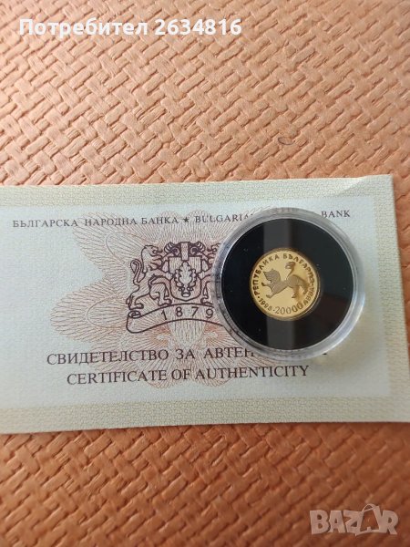 Златна монета " Четвероевангелие" 1998 г. 1,55 гр.чисто злато, със сертификат на БНБ, без забележки.