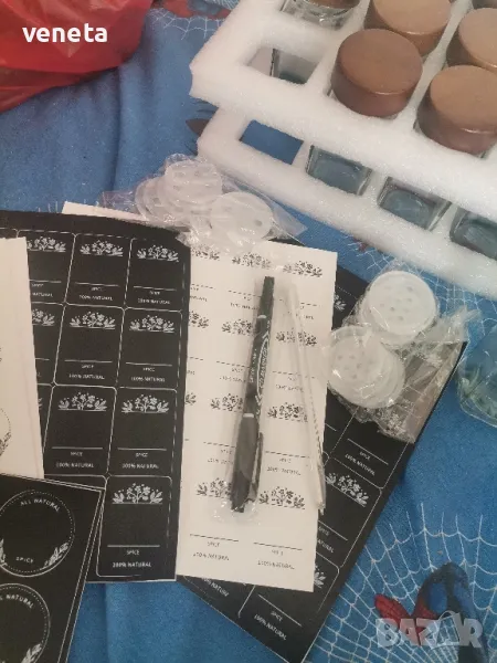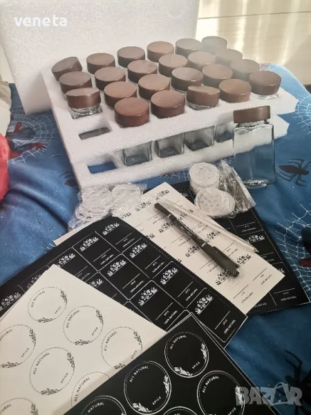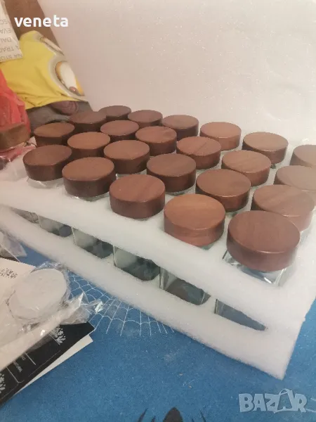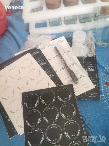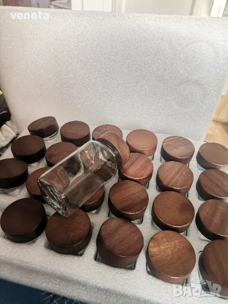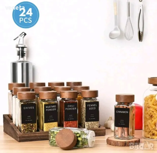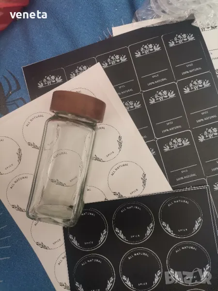 Стъклени буркани за подправки с етикет, 24 броя → Обява 49376592
