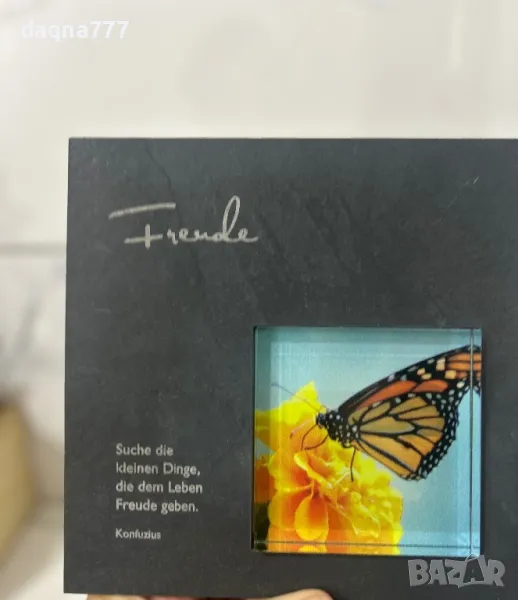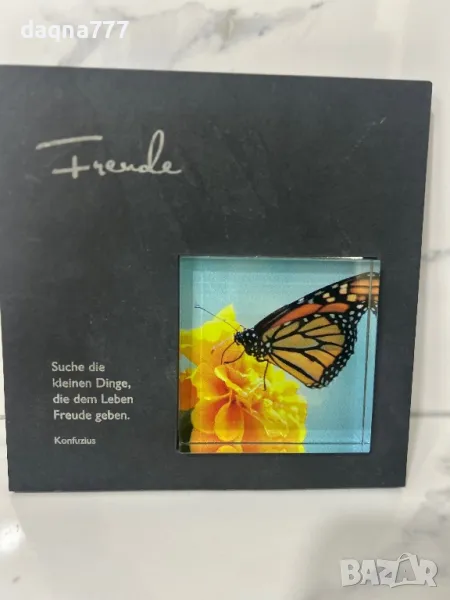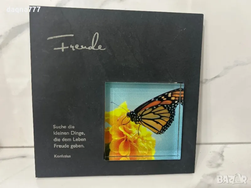 Масивна гранитна плочка/ здрава като приятелството ви/ истински гранит/, в съчетание с цветна пеперуда/ 3D в стъкло - колко е красив животът!