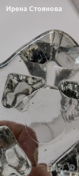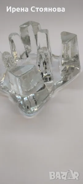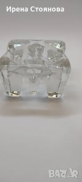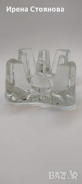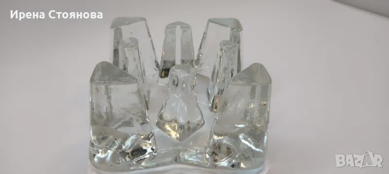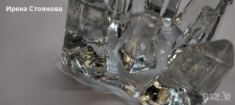 Стъклена поставка за чаена свещ/подгрев за чайник, масивно пресовано стъкло. Размери 11/11 см и височина 6,5 см. Място за свещ с диаметър 4,5-5 см. Минимални незабележими следи от употреба/съхранение. Цена 30 лв.