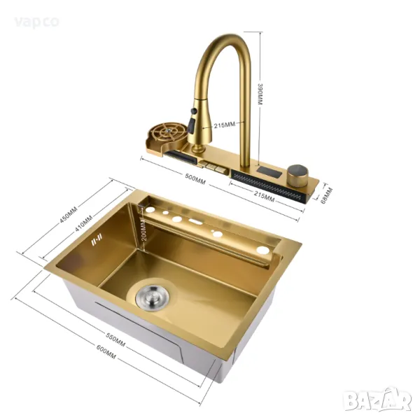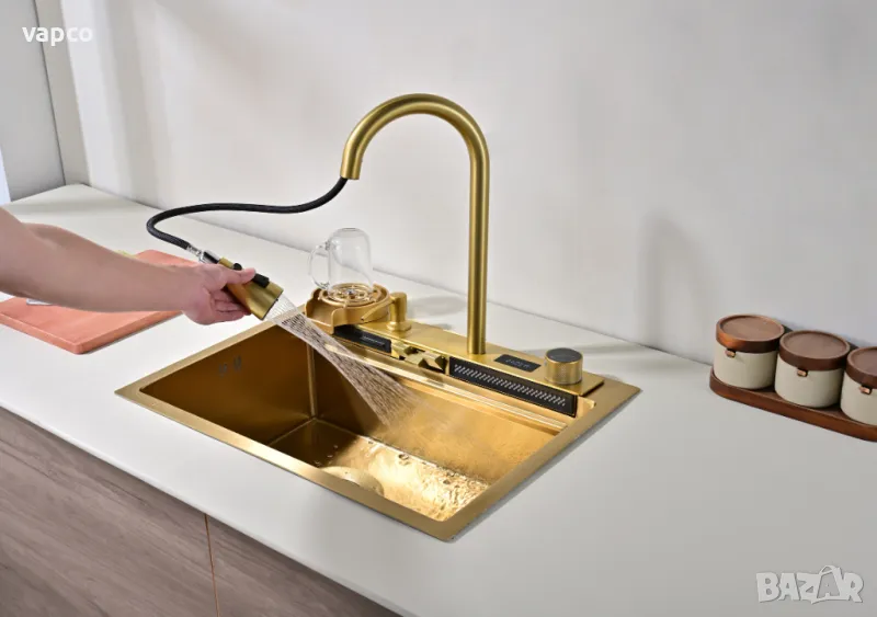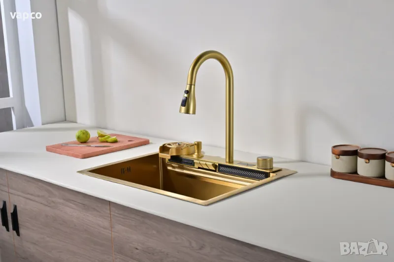 60см Златна мултифункционална кухненска мивка с двоен водопад