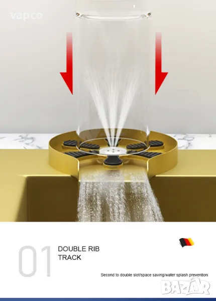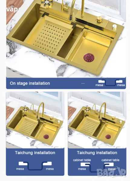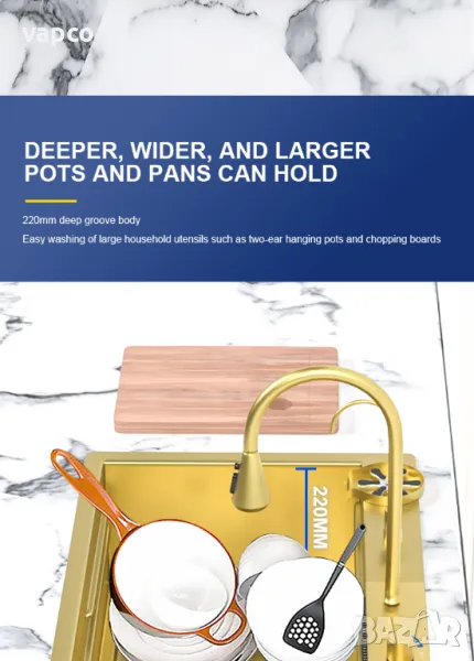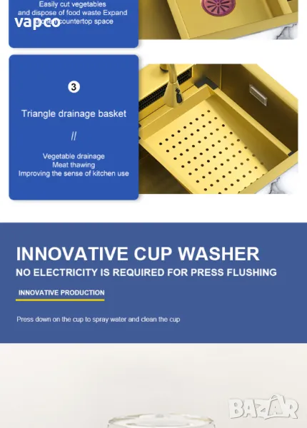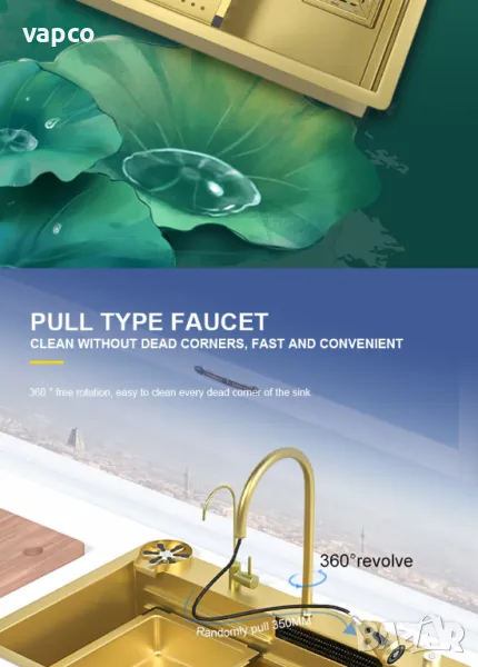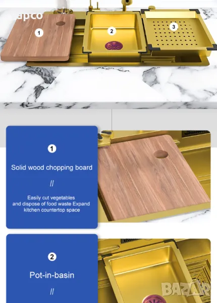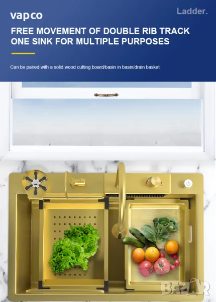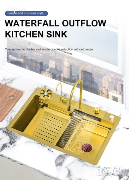 60см Висококачествена мултифункционална кухненска мивка в цвят злато