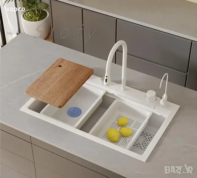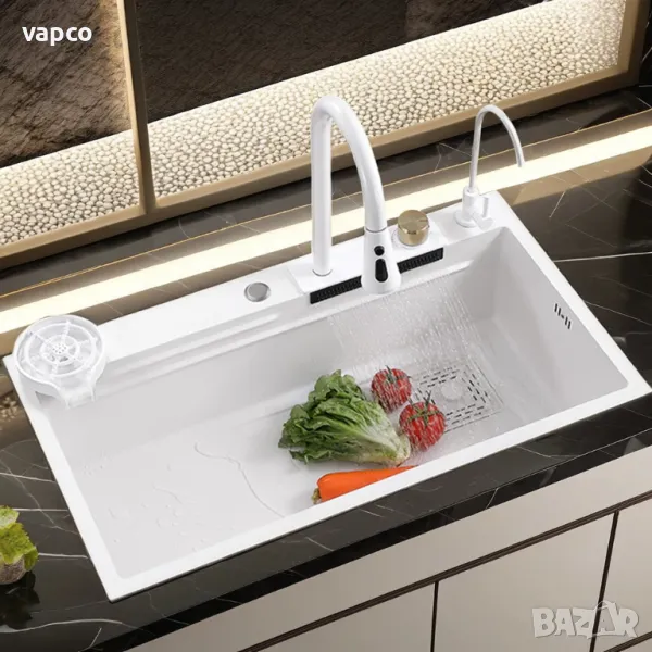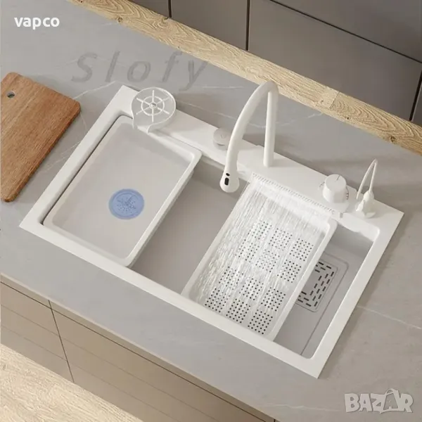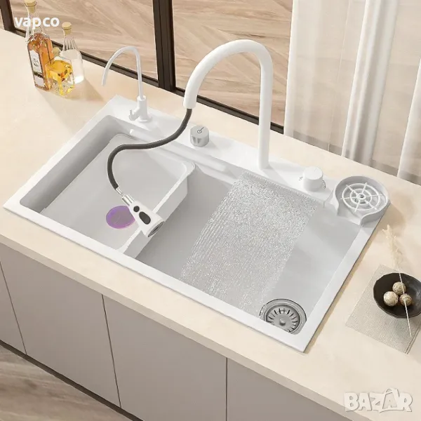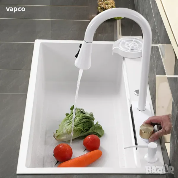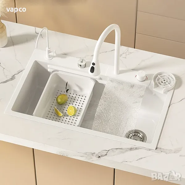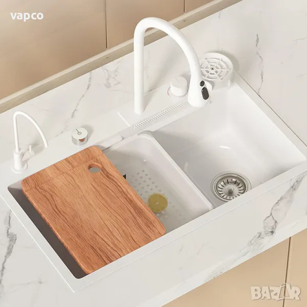 60см Висококачествена мултифункционална бяла кухненска мивка