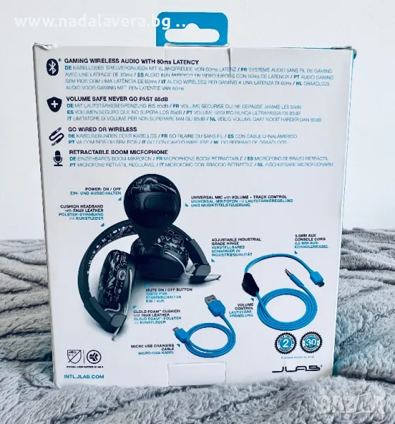 Разполага с прибиращ се микрофон с бутона за бързо заглушаване, което улеснява комуникацията по време на игра Безопасен звук: Ограничен е до 85 децибела, за да защити слуха на децата. Дълъг живот на батерията: Предлага над 22 часа време за игра с едно зареждане. Съвместимост: Работи безжично с мобилни устройства и