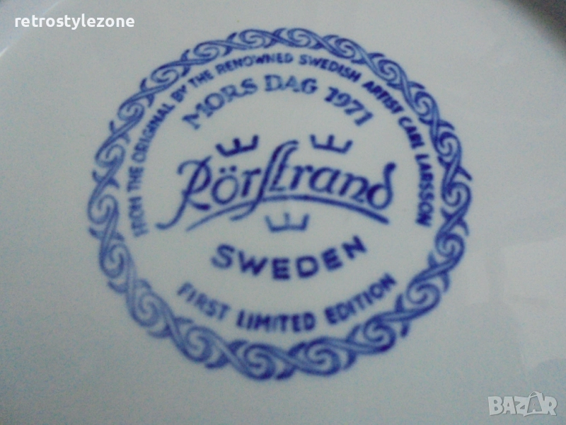 Рядка и ценена колекционерска находка – порцеланова чиния Rörstrand Mors Dag 1971, първото издание от традиционната годишна серия „Mother’s Day Plate“, изработена от известната шведска порцеланова фабрика Rörstrand.