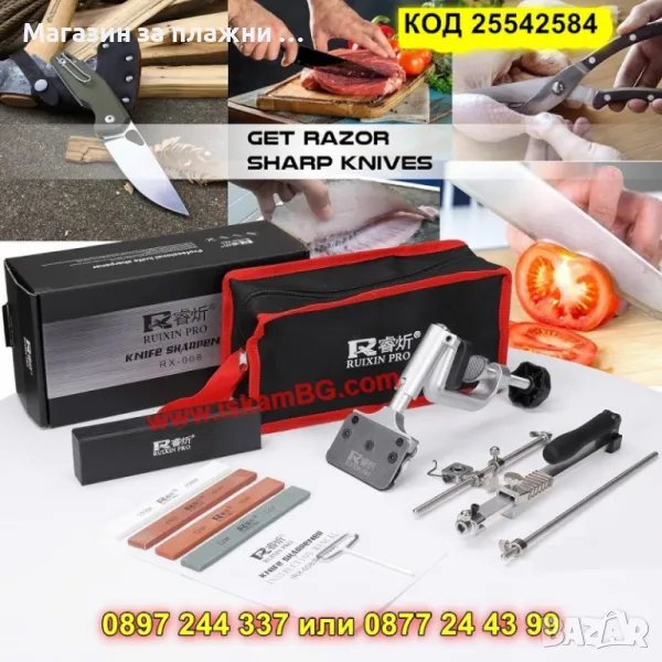 1 брой точило за ножове с фиксиран ъгъл със стяга RUIXIN PRO RX-008