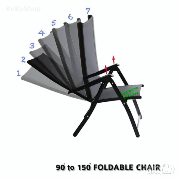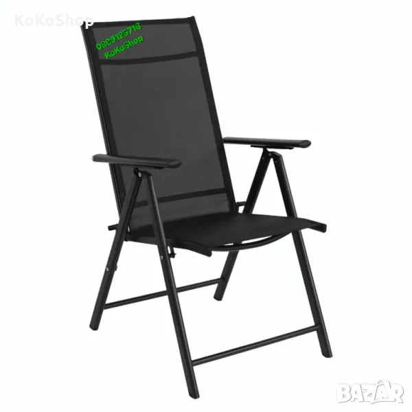 Метален сгъваем стол,идеален за къмпинг,за употреба в градината или на терасата. Столът е със здрава,стабилна и лека конструкция. Облегалката може да се регулира в седем позиции. Когато е сгънат,столът е много компактен и заема минимално място.