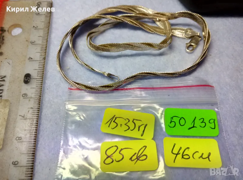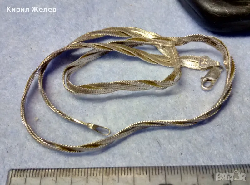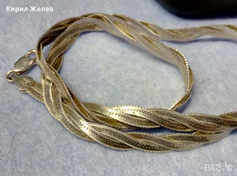 НЕЖНО ЛЕНТОВИДНО СРЕБЪРНО КОЛИЕ СРЕБРО 925 MADE in ITALY с БЯЛА ПОЗЛАТА - ЧАСТ от КОМПЛЕКТ 50139