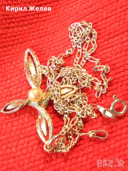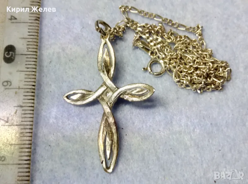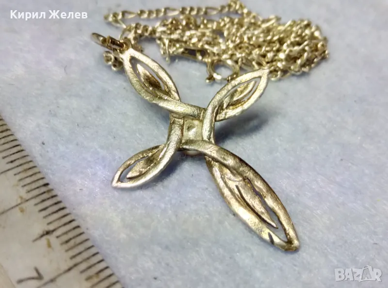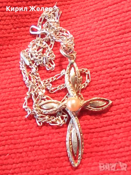 АЖУРЕН СРЕБЪРЕН КРЪСТ със СРЕБЪРНА ВЕРИЖКА КАРТИЕ ПЛЕТКА СРЕБРО 925 с БЯЛА ПОЗЛАТА и ПЕРЛА 31187
