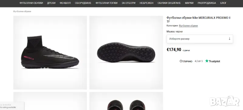 НАУКАТА ЗА СКОРОСТТА Следващото поколение Nike MercurialX Proximo II е подобно на автомобил от Формула 1, използвайки научни иновации, за да гарантира, че сте най-бързите играчи на игрището. FIT Конструиран с горна част от Flyknit и NikeSkin, MercurialX разполага с подобрена конструкция без език, докато кабелите Flywire в горната част могат независимо да реагират на това как кракът се захваща с земята за оптимално заключване. За да се намали загубата на еластичност с течение на времето, яката Dynamic Fit има по-стегната плетена конструкция, за да подобри проприоцепцията ви със земята, докато нейната вътрешна противоплъзгаща горна кърпа елиминира всяко движение на крака в ботуша. ДОКОС За да подобри вашето докосване и усещане, Mercurial Proximo разполага с нова 3-D текстурирана Speed Rib конструкция, която е плетена в Flyknit горната част на ботуша, за да създаде по-добро сцепление, докато средните канали на подметката отговаря на формата на топката. TRACTIONA Междинната подметка от Phylon по цялата дължина осигурява леко, отзивчиво омекотяване, докато външната подметка Tri-Star с гъвкави канали позволява на краката ви да се движат естествено върху изкуствени и естествени повърхности. За да увеличи издръжливостта върху абразивни повърхности, кутията за пръсти включва шевове за допълнителна здравина.