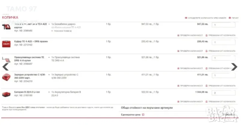 Магазинската цена на комплекта с по-малки 4.0Ah батерии е: 3 154лв. БЕЗ ДДС (С ДДСТО Е: 3 784лв.)