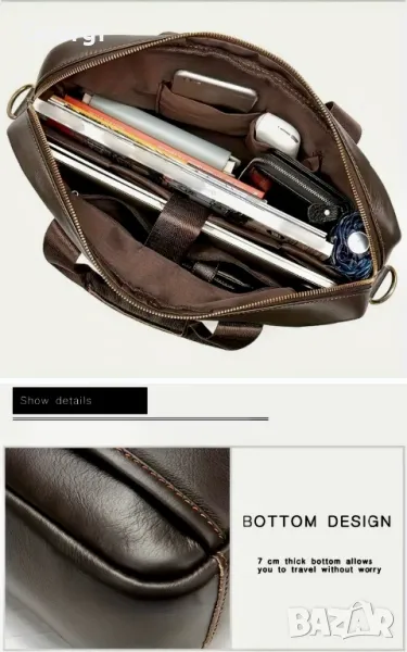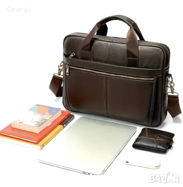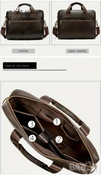 Елегантна, Стилна и Универсална Офис кожена чанта с висока индивидуалност и обем (куфарче за лаптоп с класически дизайн).