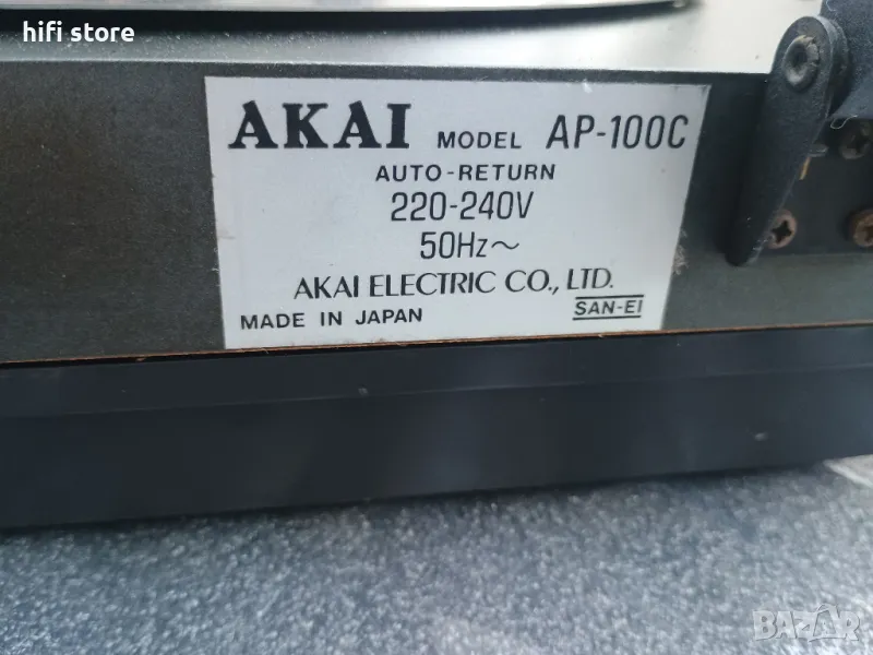 Продавам качествен грамофон AKAI AP-100C в отлично техническо състояние и много добър външен вид. Auto-return · Semi-automatic · Belt drive. Поставен му е нов ремък, нова доза и игла Аудио техника.
