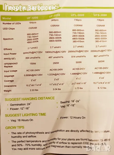 Смесени 3000K, 5000K, 660nm червено, 730nm IR и 380nm UV. Лампата създава богат спектър, за да покрие всички етапи на растеж. Ускорява времето за цъфтеж и увеличава добива, запълва цветята с пространство и спомага за невероятна реколта като същевременно спестява енергия и разходи.