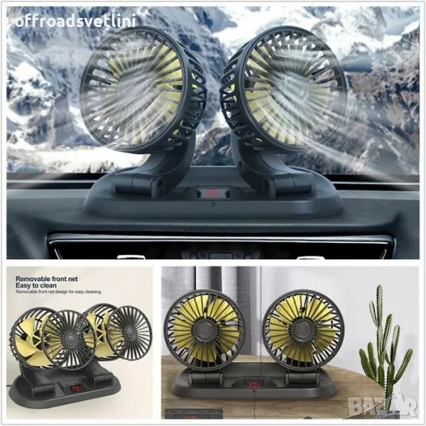 12-24V Двоен Вентилатор с Термометър, Вентилатор с 2 перки 12V 24V