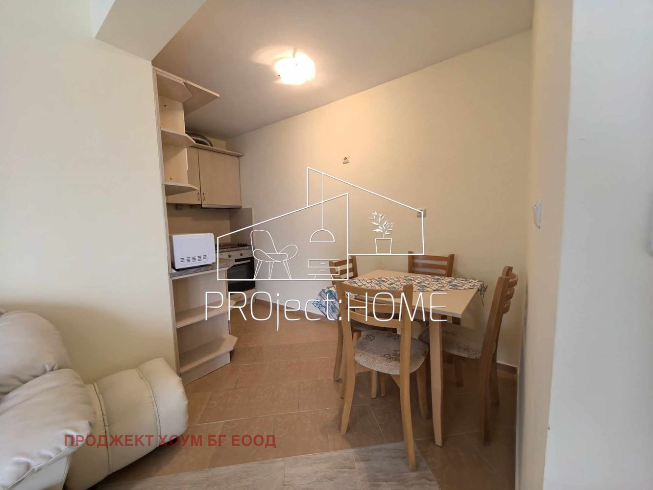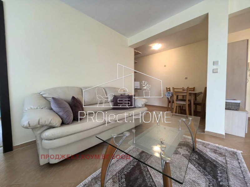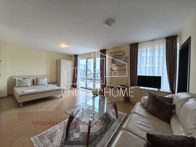 PRОject HOME/ Проджект хоум има удоволствието да Ви представи обзаведен двустаен апартамент центъра на к.к. Слънчев бряг. Апартаментът се състои от антре, хол с кухненски кът, трапезария, спалня, санитарен възел и тераса. Издава се напълно обзаведен и готов за живеене. Жилището се намира в жилищна сграда без такса поддръжка. Подходящ е както за целогодишно живеене, така и с цел инвестиция за отдаване под наем.