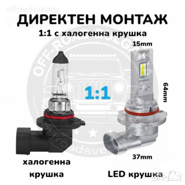 Най-новия модел LED Диодни крушки HB4 9006 за директен монтаж - без преправяния, без преходници, без смущения на радиото.