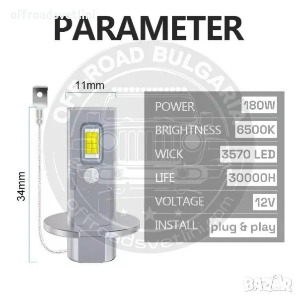 Крушки H3 180W 12V 300% светлина без вентилатор