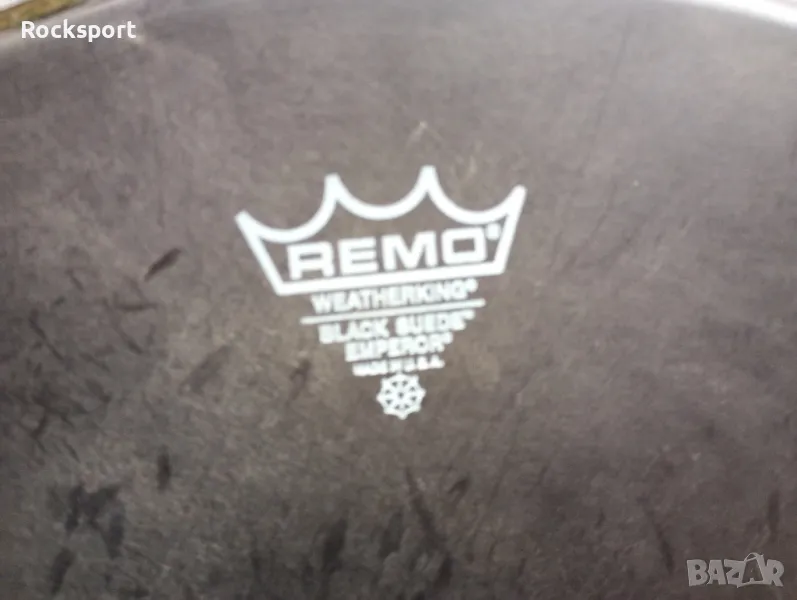 -18"Remo Emperor Black Suede ( кожата е на няколко свирения, въпреки следите от палки е почти нова. Хора ползвали този модел знаят, че матовото покритие на Суед Ремото се отбелязват палките още от първото свирене)