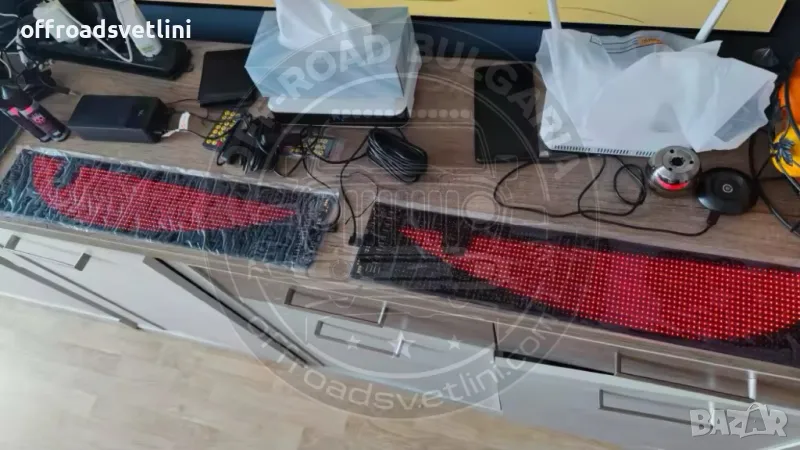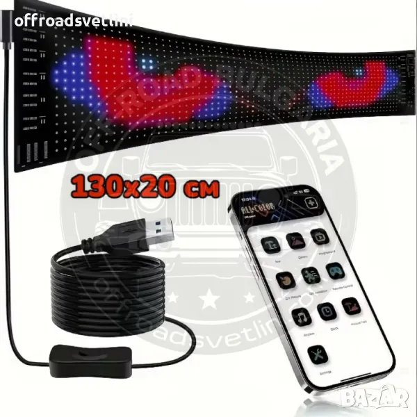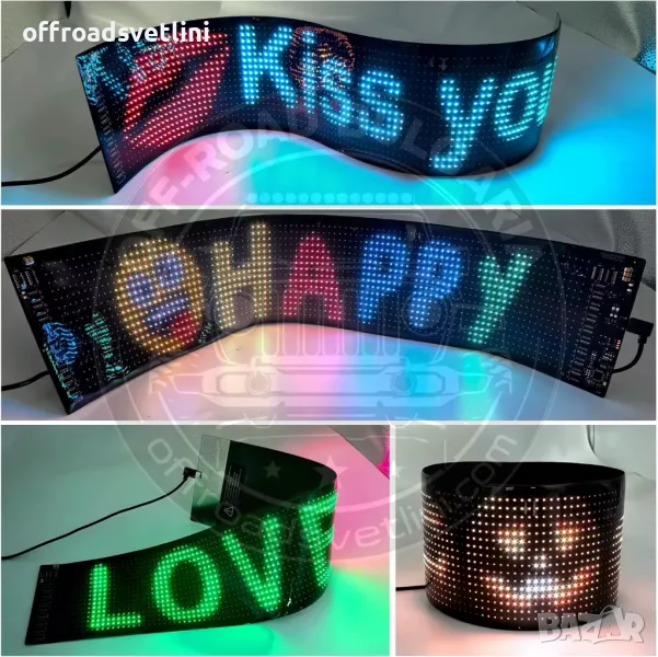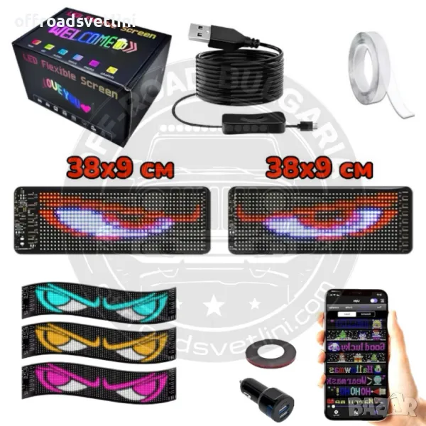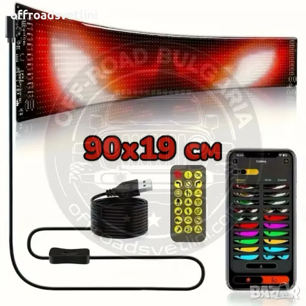 Дисплеят е изработен от тънък и лек материал, който може да се огъва и адаптира към различни повърхности. Перфектен за монтиране на предни стъкла, задни прозорци и други места.