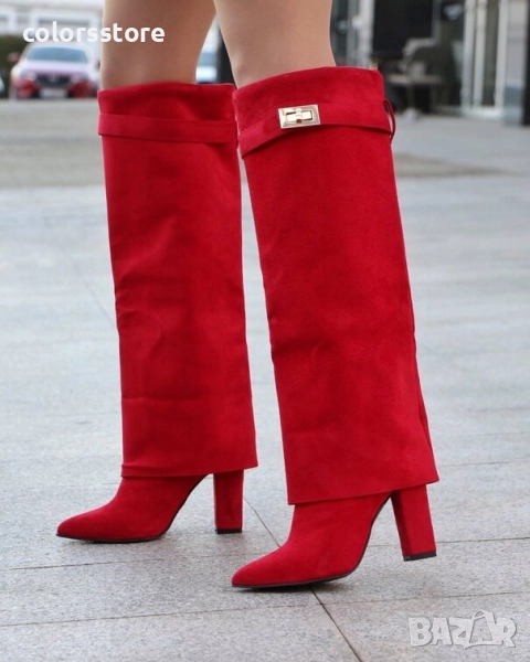 Ботуши на ток - червен велур - KD105, снимка 1 - Дамски ботуши - 49380930 Ботуши на ток - червен велур - KD105, снимка 2 - Дамски ботуши - 49380930 1/2