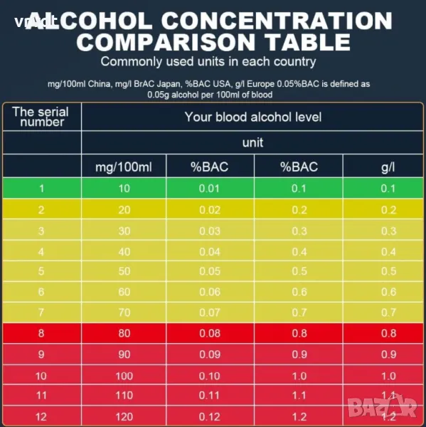 [ Лесен за гледане екран ] Проектиран с цветен дисплей с висока разделителна способност, цифровият тестер за алкохол издава тревожен звук, когато стойността е по-висока от стандартната стойност, лесни за преглед стойности на измерване.