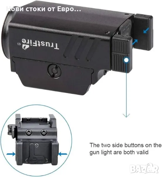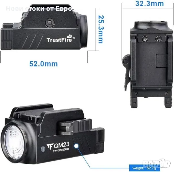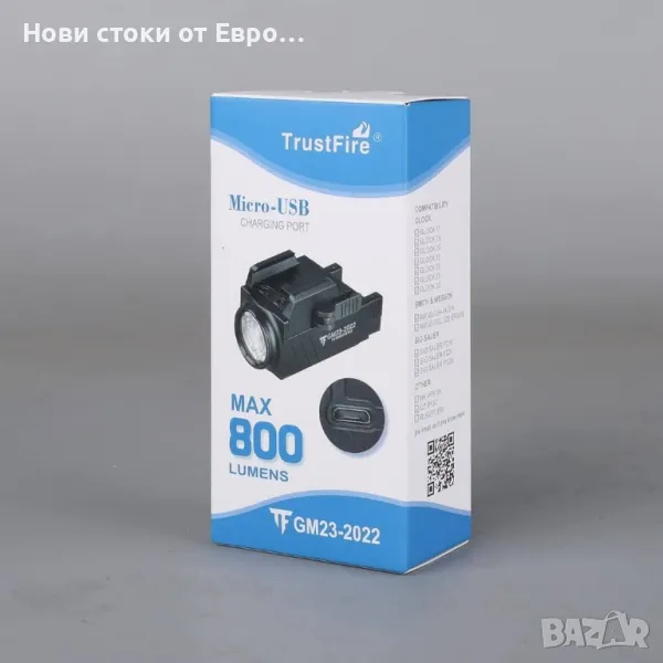 Пистолетна светлина TrustFire GM23 800 лумена Glock Gun Rail Mounted фенерче, USB