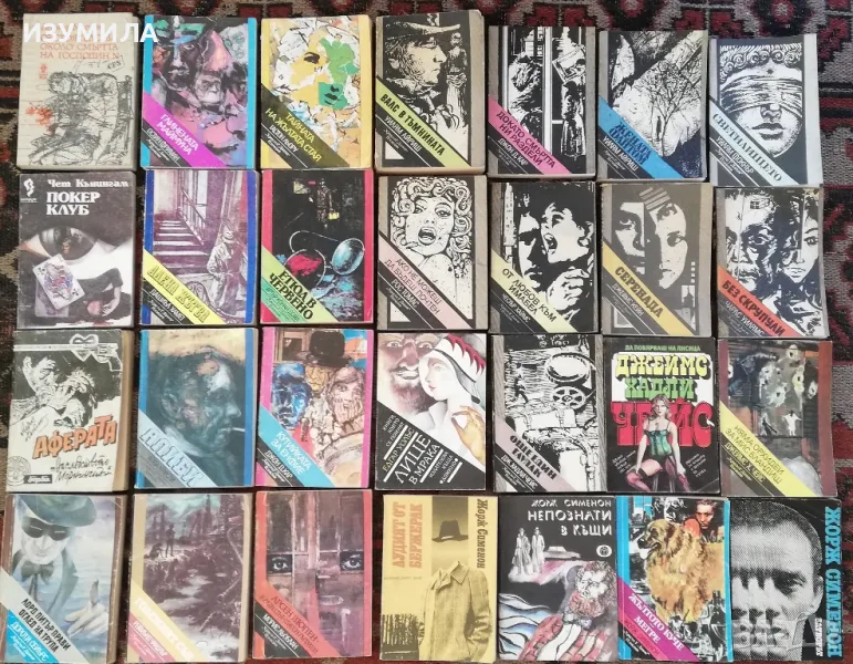 Много добро състояние. Цената е за трите книги общо, но може и по отделно. На втората снимка има още заглавия от същата поредица криминални романи. Ако търсите нещо друго, което не откривате в обявите, пишете ми. Лично предаване е възможно за Казанлък и Стара Загора, иначе изпращам с Еконт или Спиди с опция преглед. За чужбина само с предварително плащане.