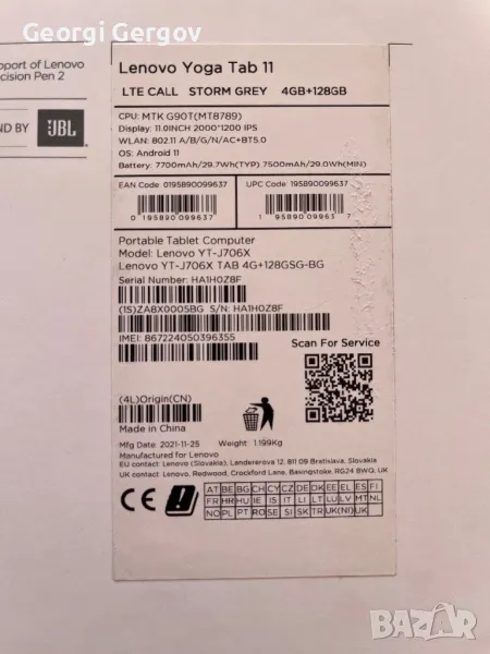 Lenovo Yoga Tab 11 → Обява 49384656