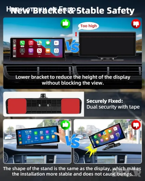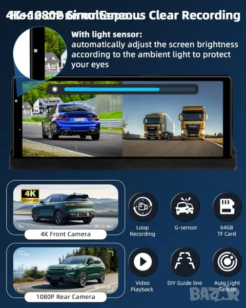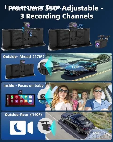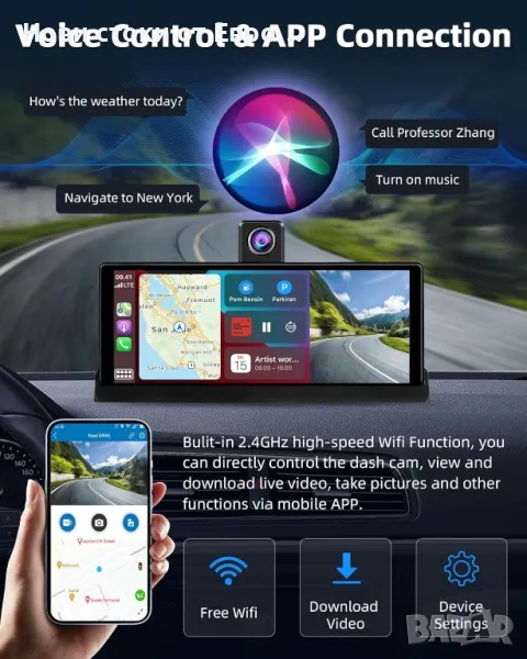 CarPlay автомобилен екран и 4K преносима Android камера за автомобилно табло за автомобилна стерео уредба, автомобилни аудио приемници 1080P резервна камера, Bluetooth/GPS/AirPlay/Google/Siri навигацияИнтелигентно безжично приложение - le Carplay и Android Auto】Най-новият мобилен автомобилен екран на Jelkuz за кола е съвместим с Apple Carplay и Android Auto. Когато сте свързани към вашия смартфон, можете лесно да осъществявате достъп до приложения, карти, музика и други функции на вашия смартфон на 10,4-инчовия екран на carplay. Преносимият автомобилен плейър също е съвместим с въздушни игри и cast android. Без значение от възрастта или модела на вашето превозно средство, можете да се насладите на по-безопасно и по-интелигентно шофиране с тази модерна технология! 【Два уникални дизайна】①Предната камера на екрана на автомобила може да се върти на 350°, което може да заснеме множество слепи зони, които са невидими за водача, като предната/страничната/вътрешната част на колата, което улеснява наблюдението на децата на задната седалка или от страната на пътника, като същевременно избягва разсейването на шофирането. ②Персонализирана скоба според външния вид на carplay, увеличаване на зоната на сила и решаване на проблема с традиционната лепилна скоба, която лесно се отлепва и пада 【Dash Cam/4K Backup Camera】Преносим Android монитор за кола се предлага с 4K предна камера и 1080P задна камера за едновременен запис. 4K чипът предоставя ясни изображения, улавя регистрационни номера и записва допълнителни подробности за шофиране. Преносим екран за carplay е оборудван със сензорни светлини, които автоматично регулират яркостта според околната светлина. Независимо дали шофирате в тунел или под ярка светлина, той ви осигурява ясна видимост и предпазва очите ви 【Двоен Bluetooth за аудио без загуби】Безжична автомобилна стерео уредба за кола използва надграден двоен Bluetooth 5.0 за по-стабилно предаване, можете да използвате Bluetooth за безжично предаване на аудио към стерео високоговорителите на колата за работа, реализирайки автомобилно стерео аудио изживяване без загуби. Безжичното управление на силата на звука на музиката и разговорите със свободни ръце гарантира непрекъснато шофиране. В допълнение, стерео плейърът за кола с резервна камера също поддържа безжично FM аудио предаване и AUX аудио изход 【Функция за обръщане на Apple Carplay】 26 см безжичен екран за автомобил на Apple също е оборудван с WiFi функция, която ви позволява да преглеждате, възпроизвеждате и изтегляте файлове в реално време на вашия мобилен телефон, без да използвате компютър. 【Интелигентна навигация и гласово управление】осигурява интелигентна навигационна система в реално време в колата чрез свързване с carplay, предоставя ви най-бързия маршрут без трафик. Мобилната операционна система на Apple има вградена микрофонна функция, която прави телефонните разговори и слушането на музика по-плавни и дори можете да изпращате гласови команди за достъп до асистента Si.ri/Go.oogle, освобождавайки ръцете си и правейки шофирането ви по-безопасно 【Лесна инсталация】Преносим екран за android за кола се захранва от запалка, включете и пуснете, няма нужда да разглобявате части от колата, може лесно да се инсталира в различни превозни средства от 7-32 V. Професионален технически екип след продажбата винаги е готов да ви помогне в рамките на 24 часа. Няма нужда да се притеснявате за проблеми с и