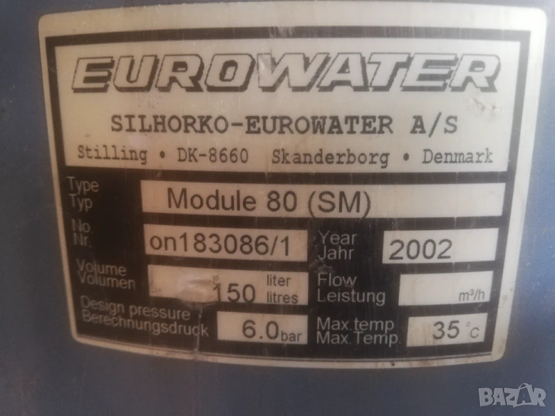 Продавам датска професионална омекотителна инсталация за вода Eurowater Module 80 (SM) с капацитет 6м3/час.
