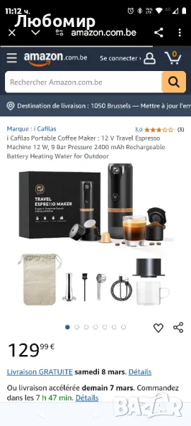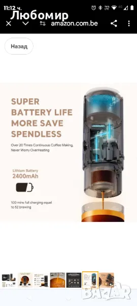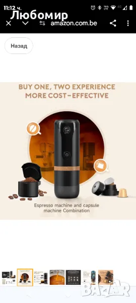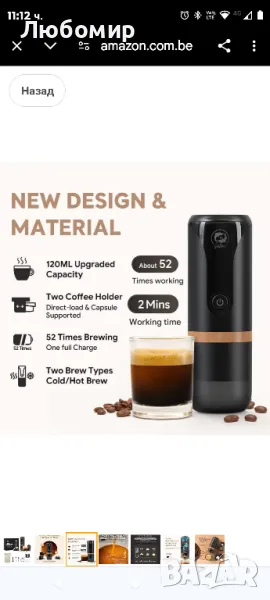 Преносима кафемашина i Cafilas: 12 V пътна еспресо машина 12 W, 9 бара налягане 2400 mAh акумул