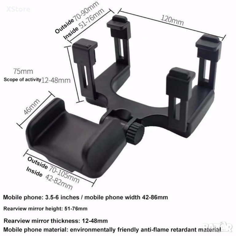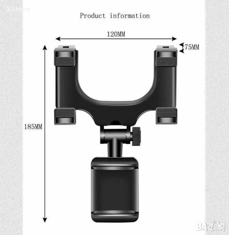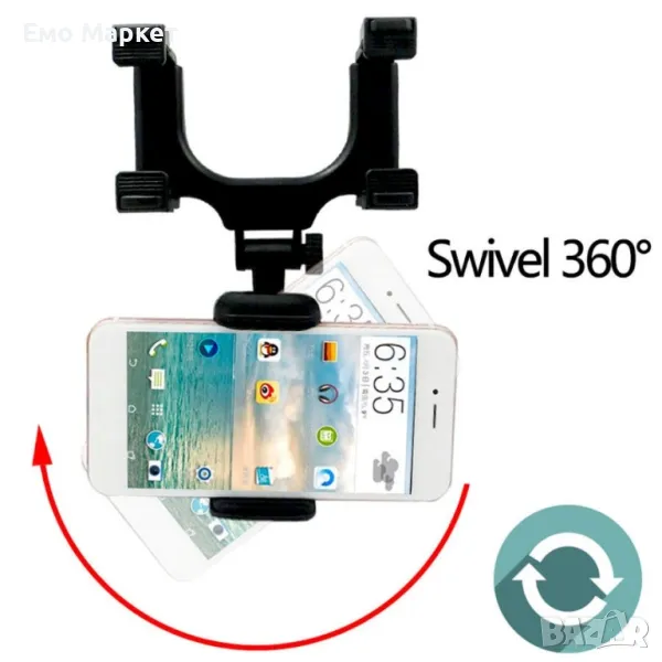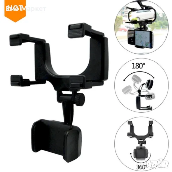 Удобна и стабилна въртяща се на 360° стойка за телефон за кола, която се закрепва за огледалото за обратно виждане.