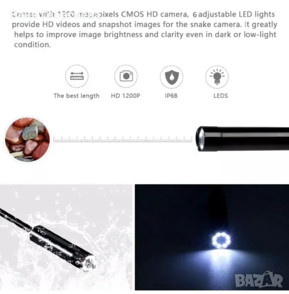 Ендоскопска Водоустойчива камера Wi-fi Ендоскоп HD720P, 3 m, 8 x LED → Обява 49387085