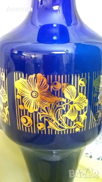 💧Ваза от стъкло с цвят турско синьо и злато !