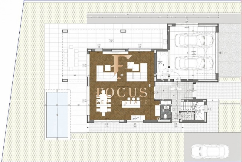 Към имота има двор - 385,11 кв.м., паркомясто и басейн.
