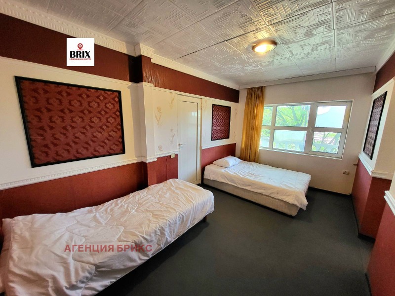 Агенция BRIX има удоволствието да Ви представи къща на четири етажа в русенското село Иваново, с РЗП 1200 квадратни метра. Имотът се намира в близост до центъра на главен асфалтов път. Парцелът е с площ от 2472 квадратни метра. Къщата разполага общо с 11 спални със собственин санинтарни възли, също така с кухня и трапезария на първия етаж. Подходяща е за хотелски бизнес, тъй като в атриума е изградена и рецепция за гости.